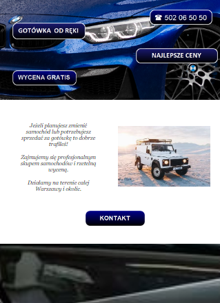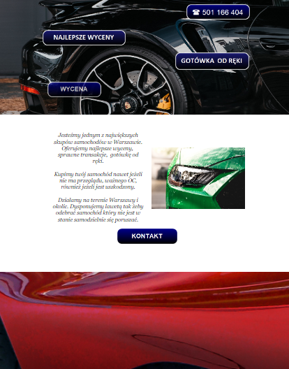 Prosta strona internetowa o firmie skupującej auta. Żywa niebiesko-granatowa kolorystyka, efekty wyskakujących z tła zdjęć i napisów - po prostu fajna strona;)